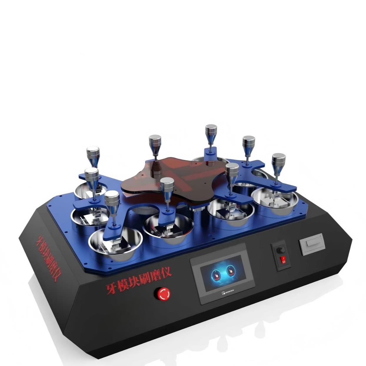 將標(biāo)準(zhǔn)牙刷和牙磨塊裝刷磨儀上,調(diào)節(jié)牙刷對(duì)牙塊的垂直壓力為150g士2g,然后設(shè)置刷磨儀的往返頻率為100r/min。往樣品組和對(duì)照組的漿料杯中分別加入牙膏漿液和對(duì)照擦劑漿液,每個(gè)漿料杯中加入等體積漿液,保證漿液完quan浸沒牙磨塊。啟動(dòng)刷磨儀,往返劇牙600次。